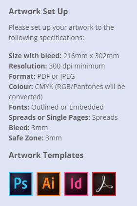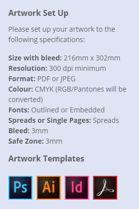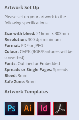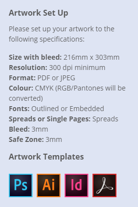 Please download our templates below to assist with setting up your artwork.